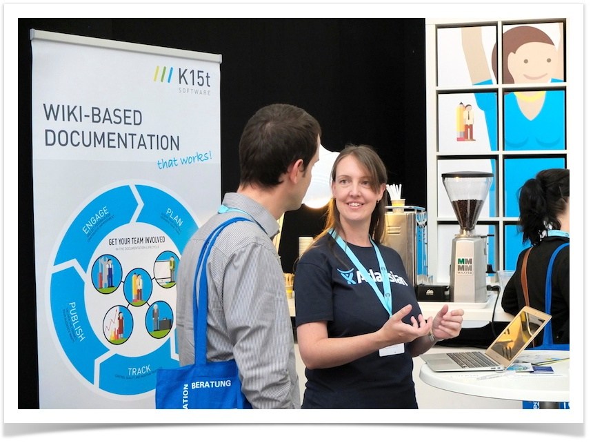 At our booth, conference participants and trade show visitors had the opportunity to get a first-hand demo and learn about our new and updated content management and single-source publishing add-ons for Confluence: